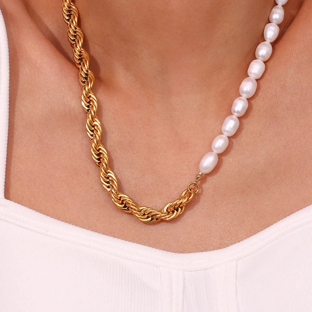 Transforme qualquer ocasião em um momento especial com o Colar de Corrente Torcida com Pérolas de Água Doce, a escolha perfeita para mulheres que valorizam estilo e qualidade.