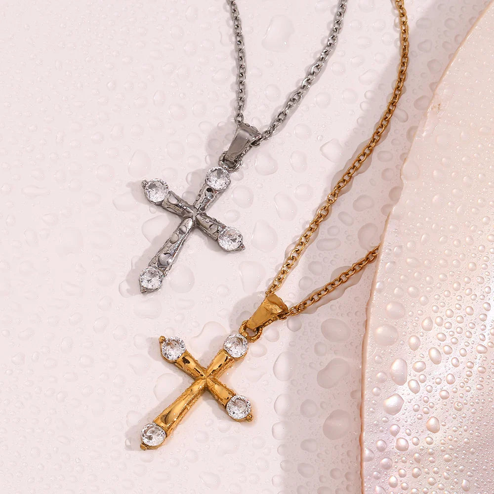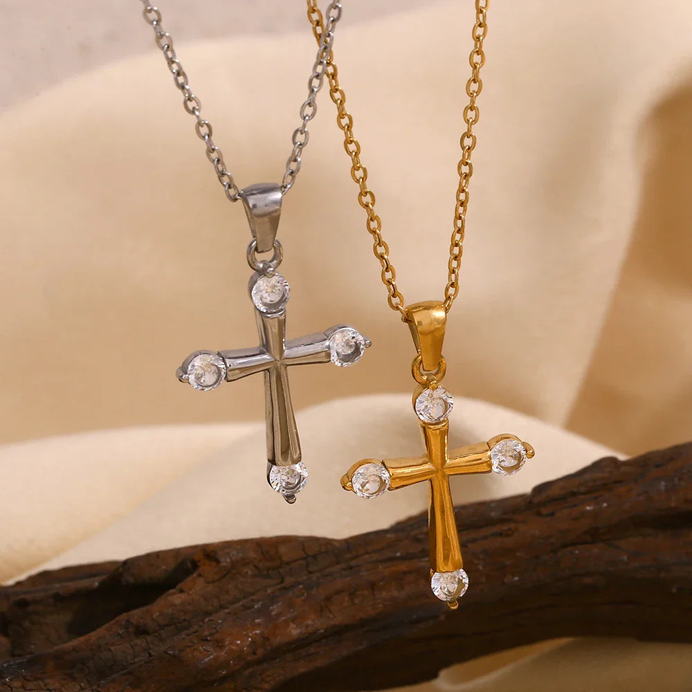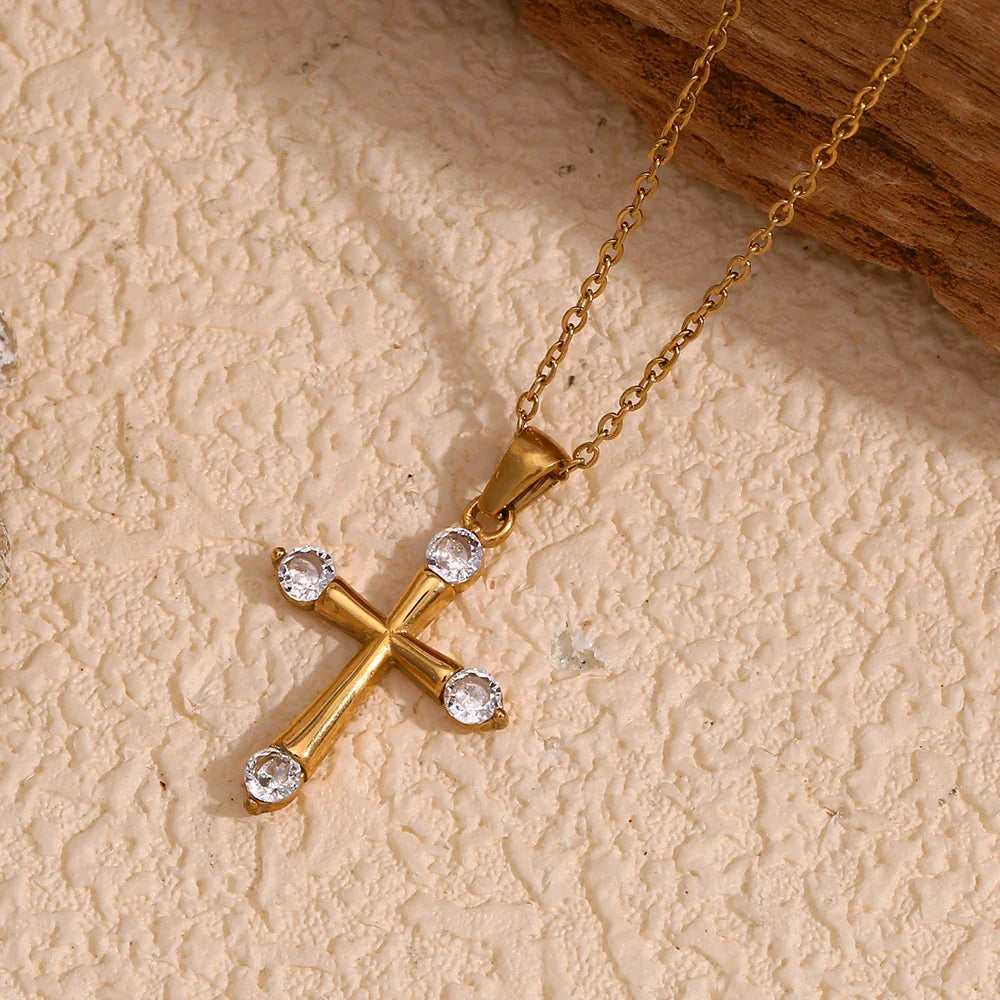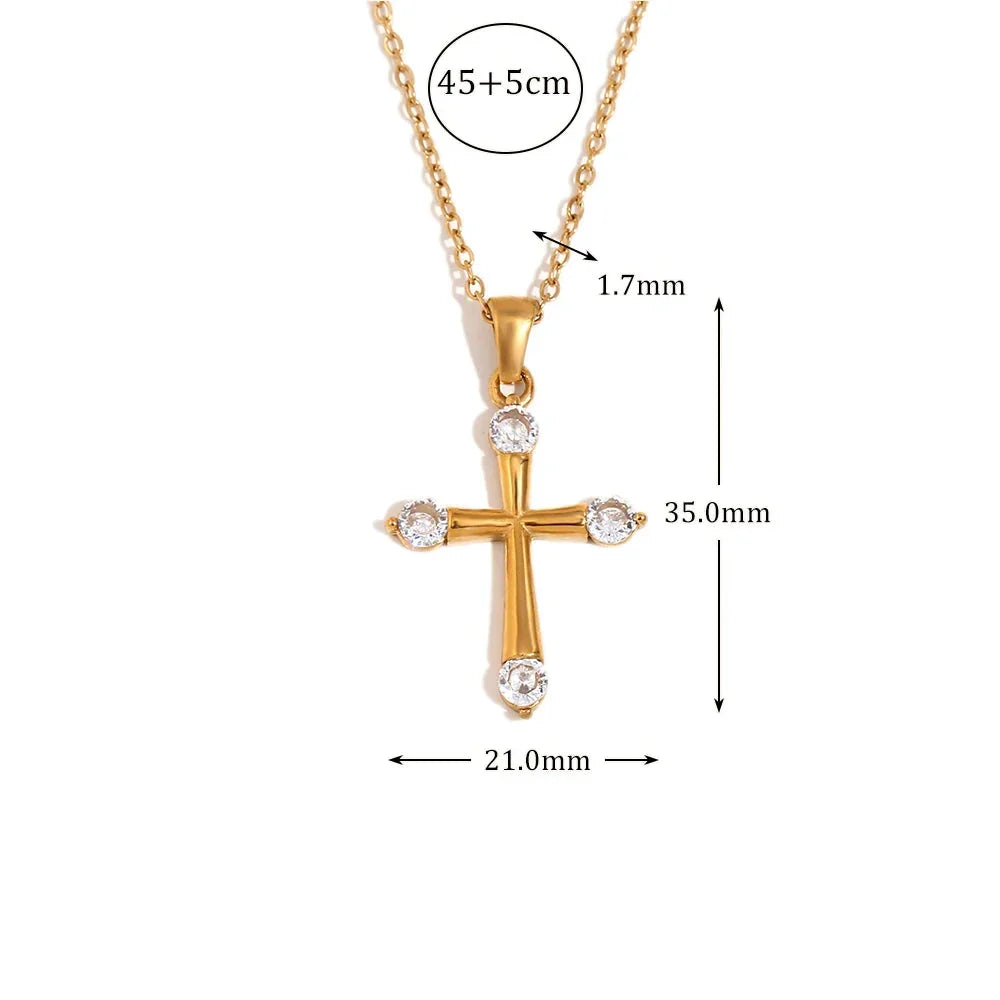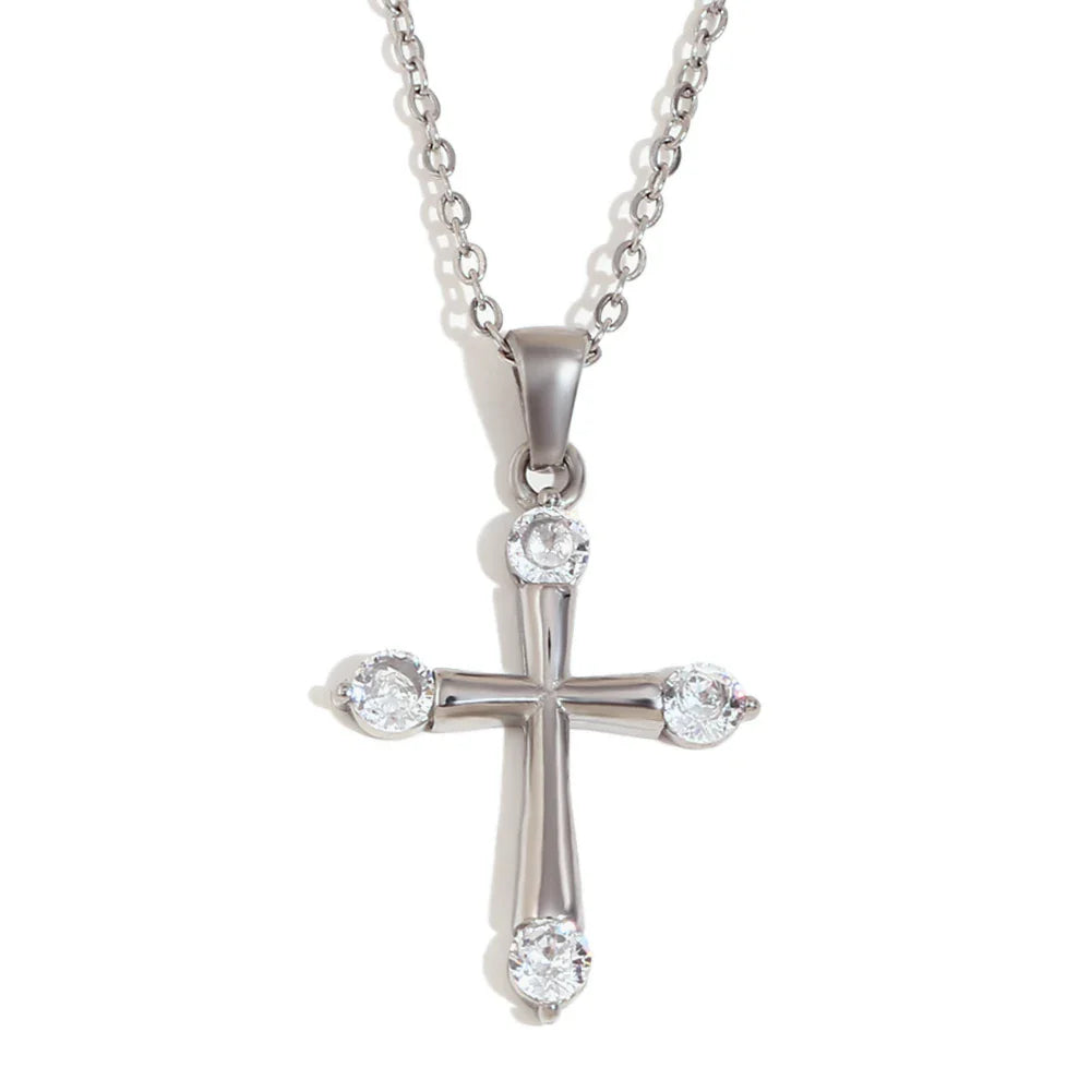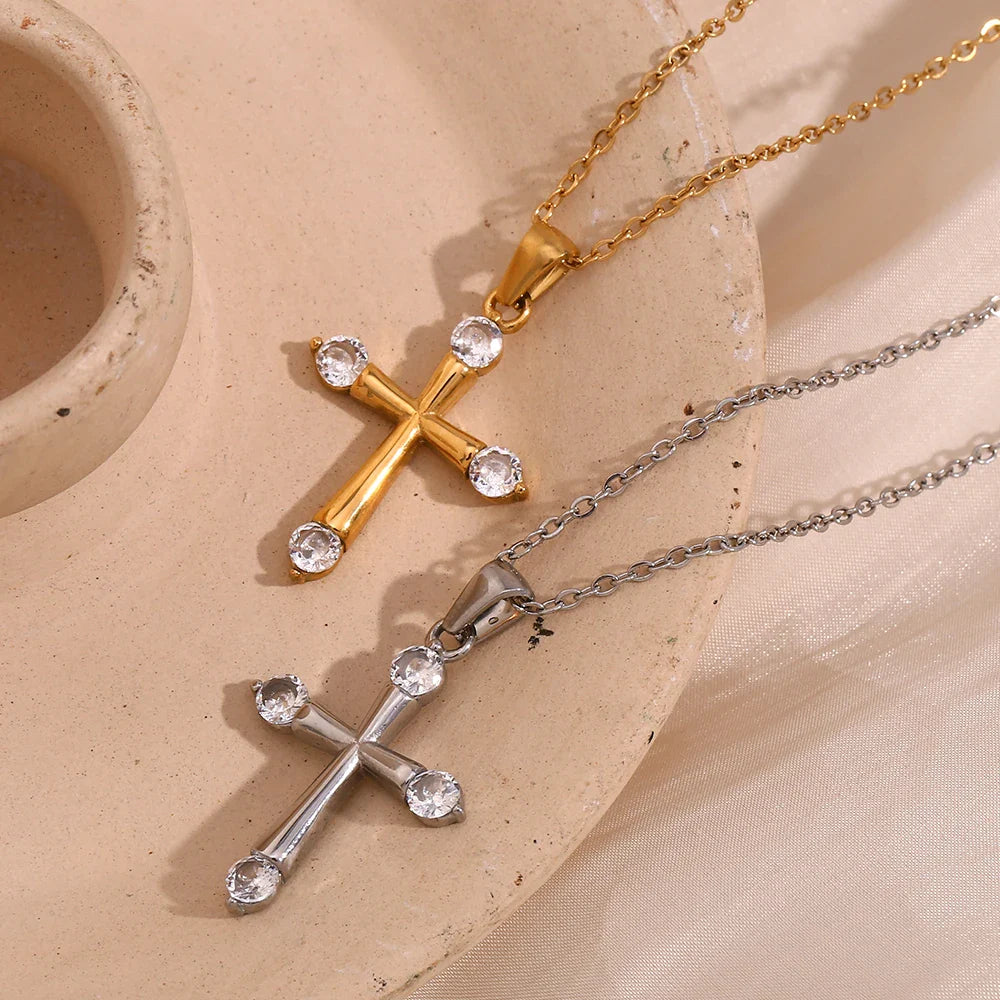Colar Cruz Minimalista com Zircônia em Aço Inoxidável
