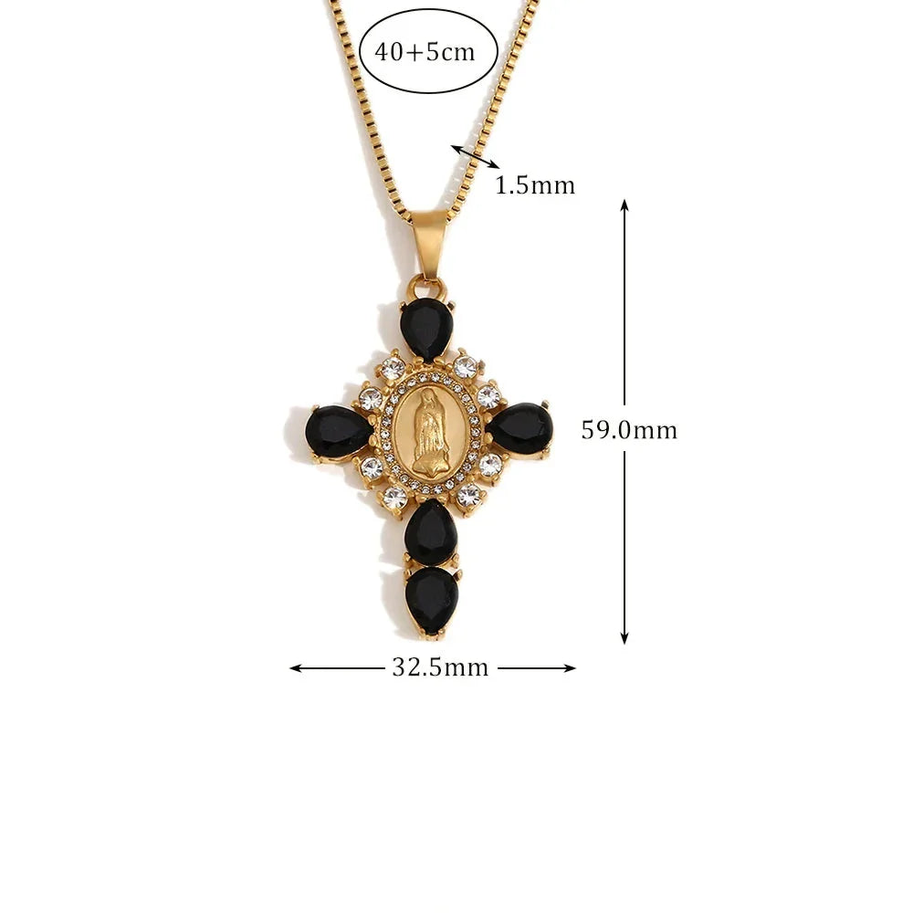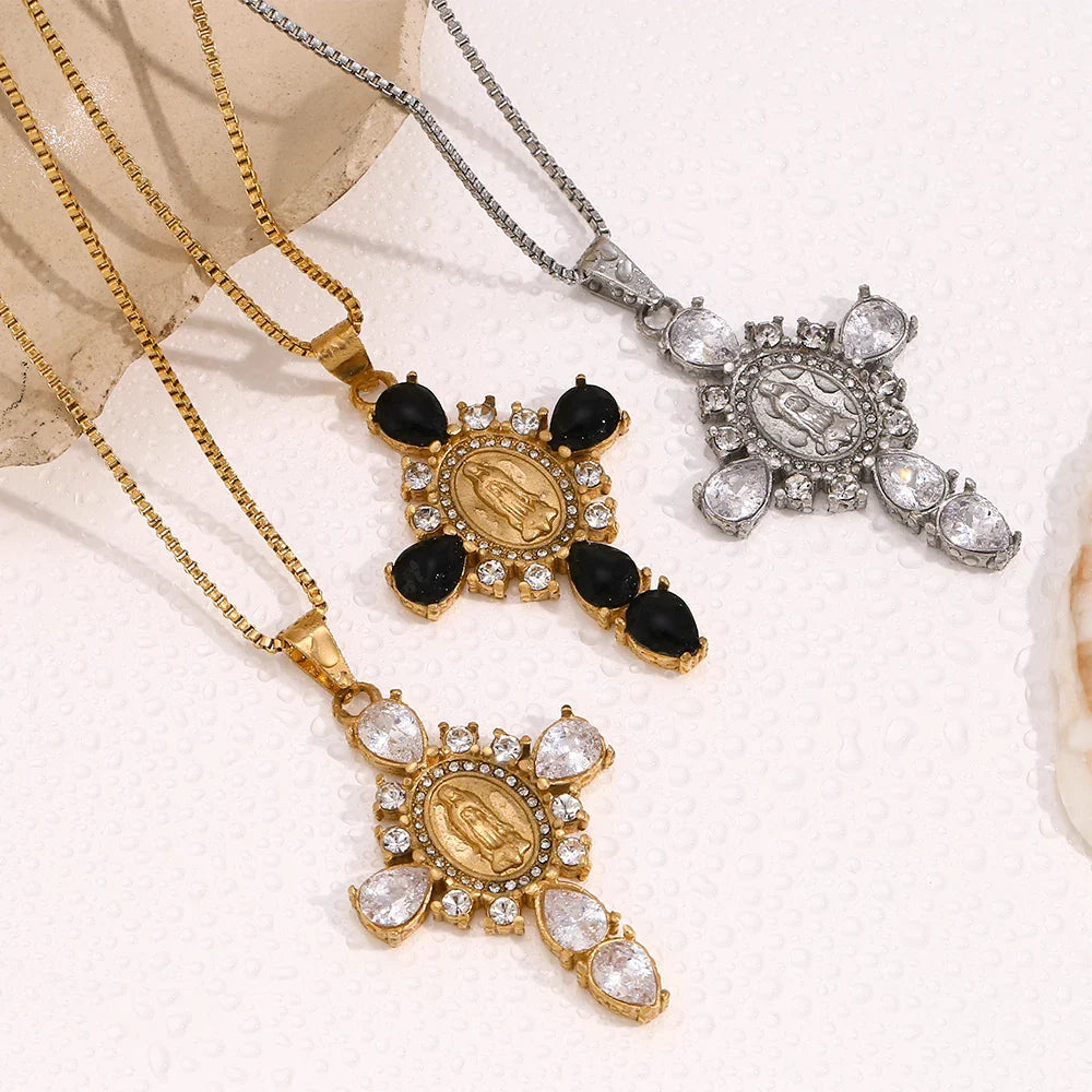 Design Elegante: O pingente em forma de cruz com a imagem da Virgem Maria é adornado com zircônias brilhantes, proporcionando um brilho encantador.