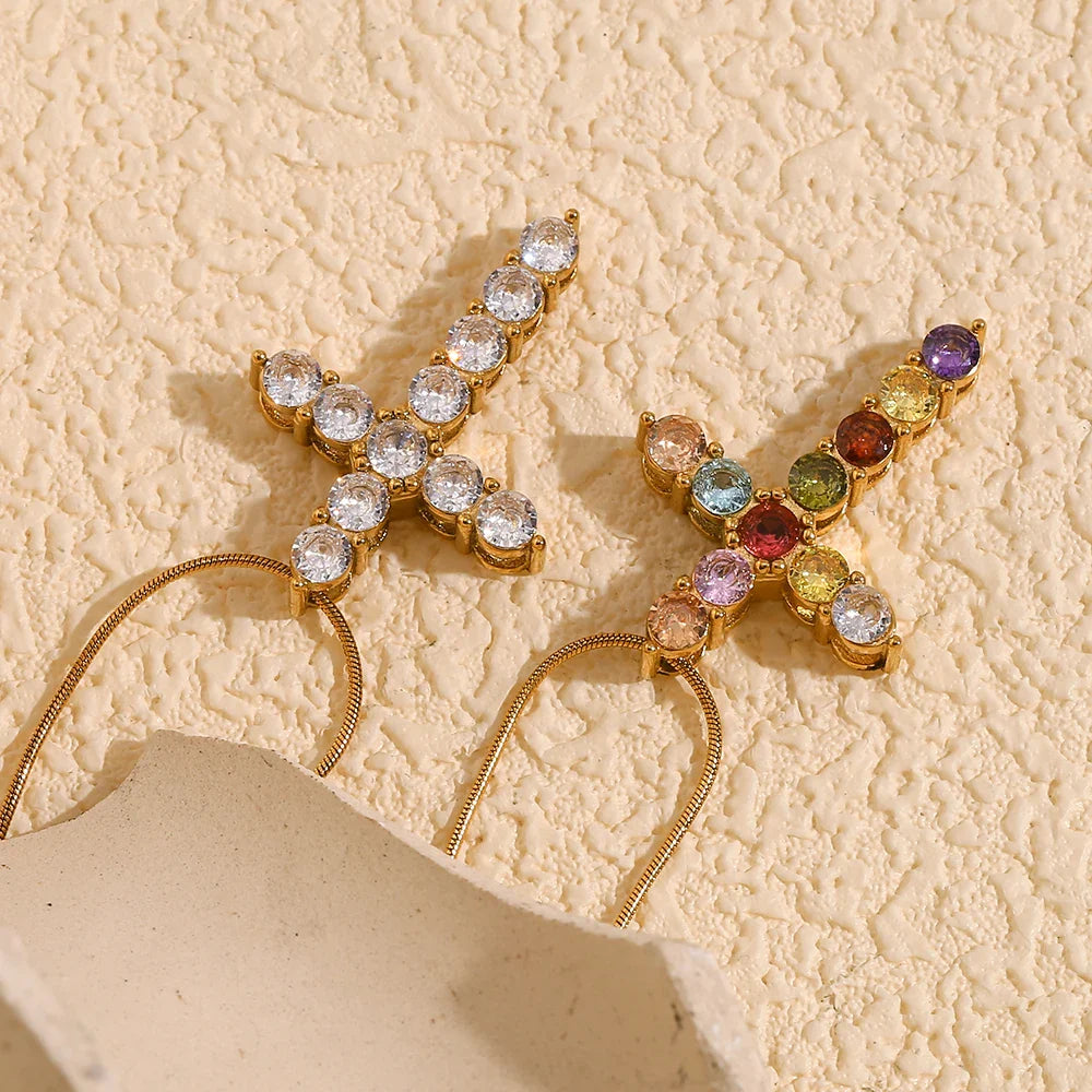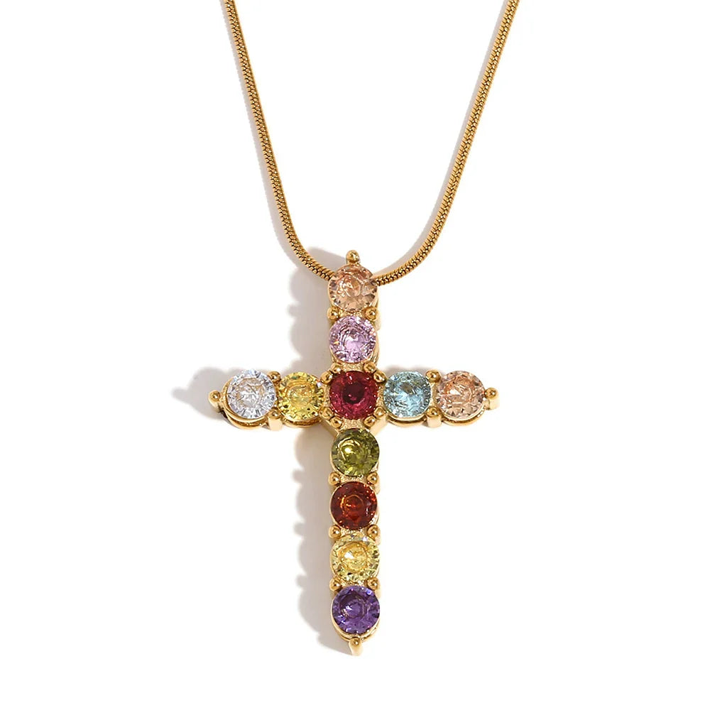 Design Elegante: A cruz adornada com zircônias coloridas traz um toque de brilho e cor ao seu visual.