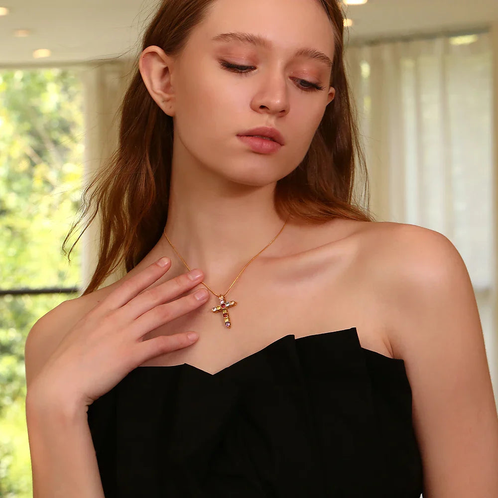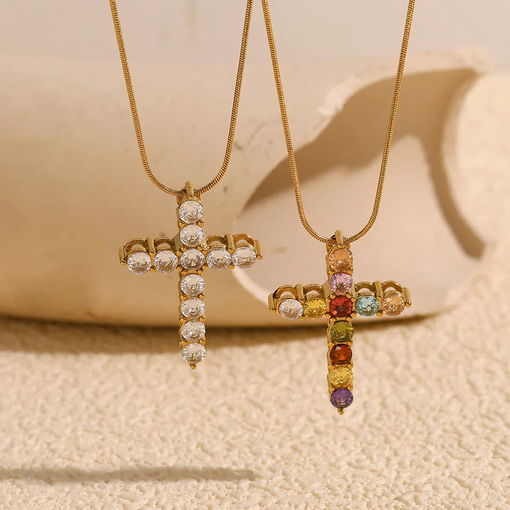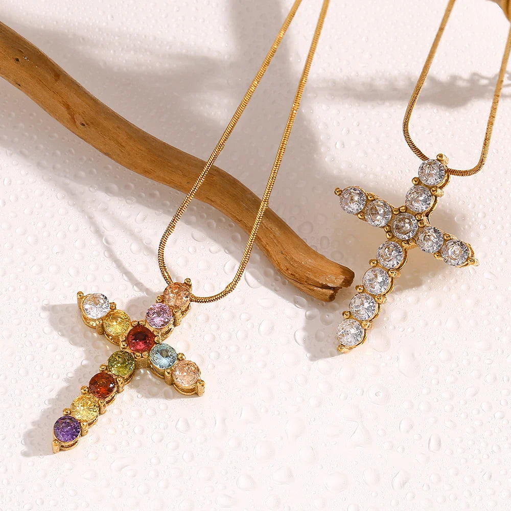 Seja para uma ocasião especial ou para dar um toque de glamour ao seu dia a dia, o Colar Cruz Clássico com Zircônias Coloridas é a escolha ideal. Transforme seu look com esta peça deslumbrante!