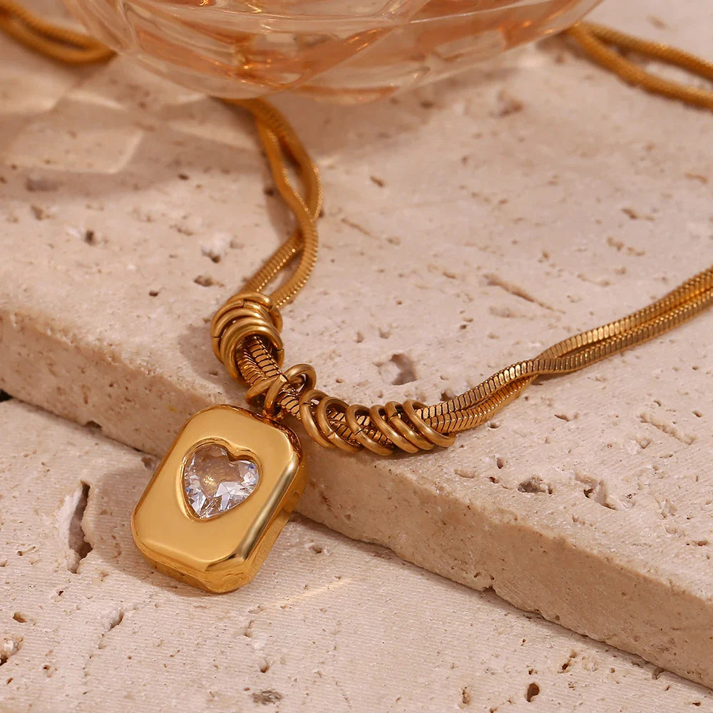 Exklusives Design: Mit einem Herzanhänger, verziert mit Zirkonia, ist diese Halskette ein echter Blickfang.