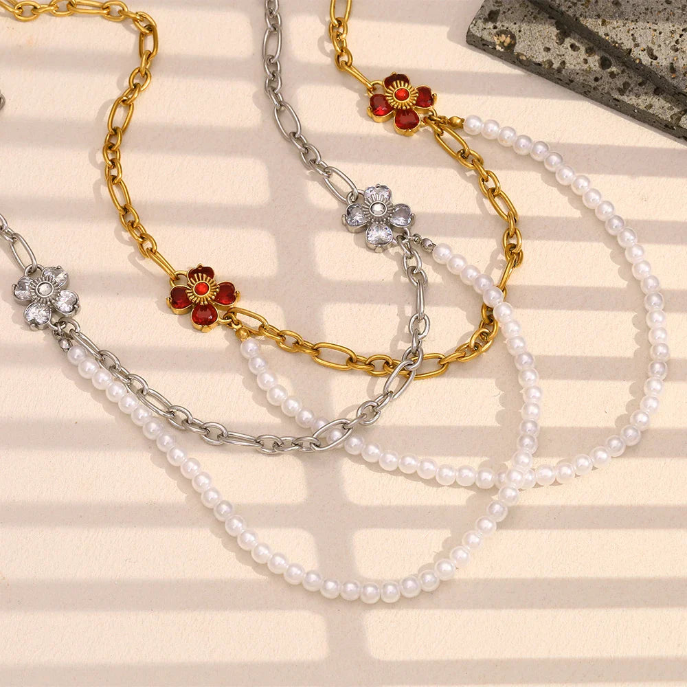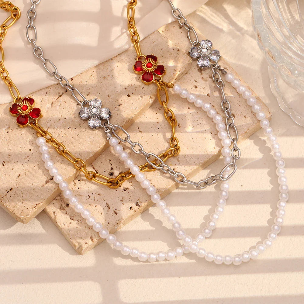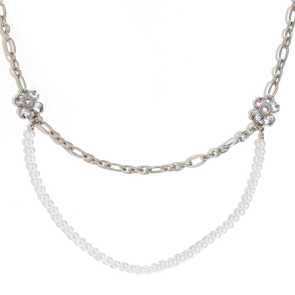 Transforme qualquer look com o Colar Duplo de Pérolas e Flores, uma peça indispensável para quem valoriza beleza e qualidade.