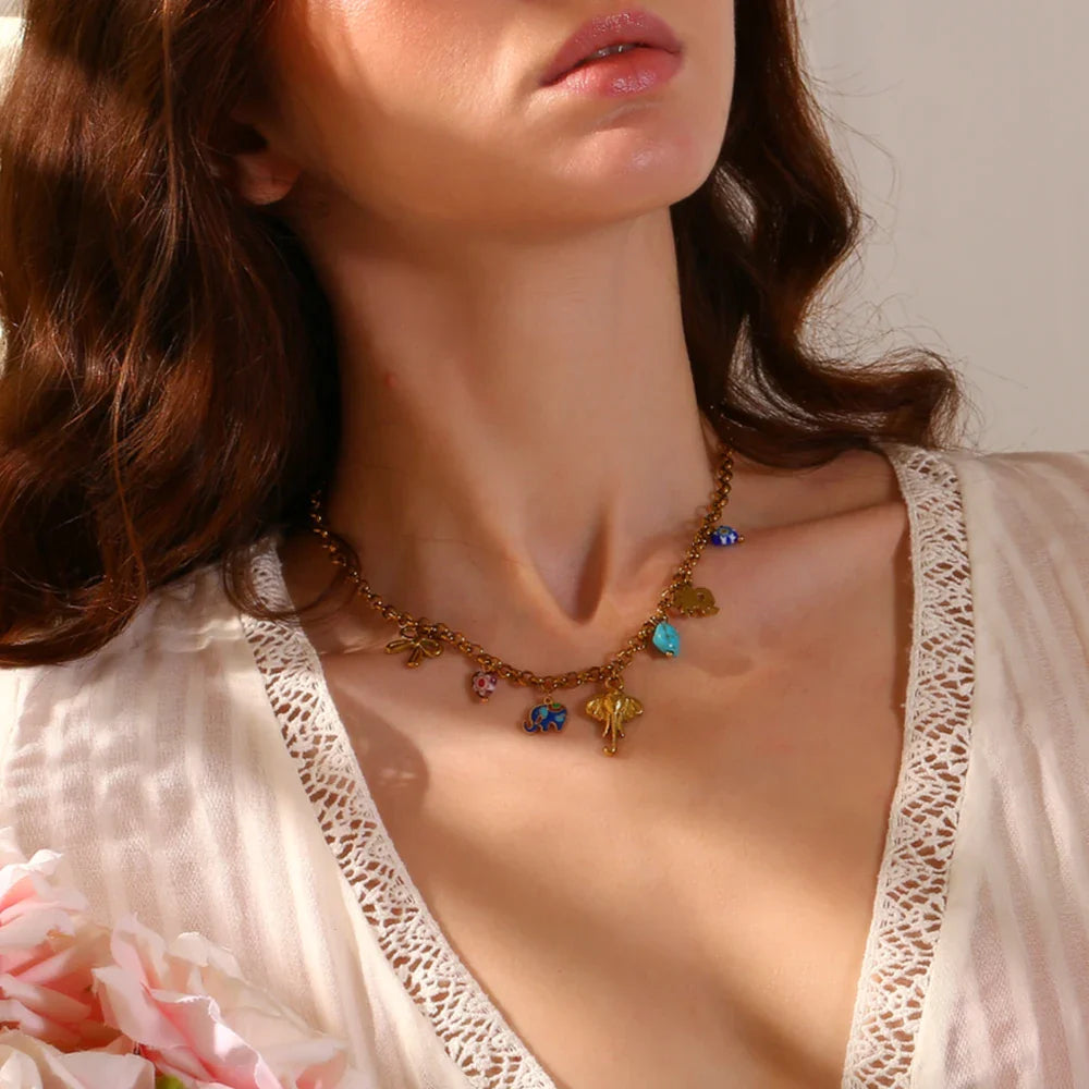 Colar Elefante com Charme Animal em Aço Inoxidável