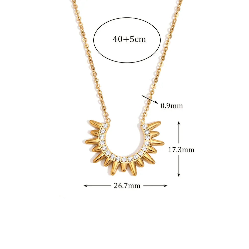 Design Único: O pingente em forma de meia-lua com detalhes solares é adornado com zircônias brilhantes, trazendo um toque de glamour a qualquer look.
