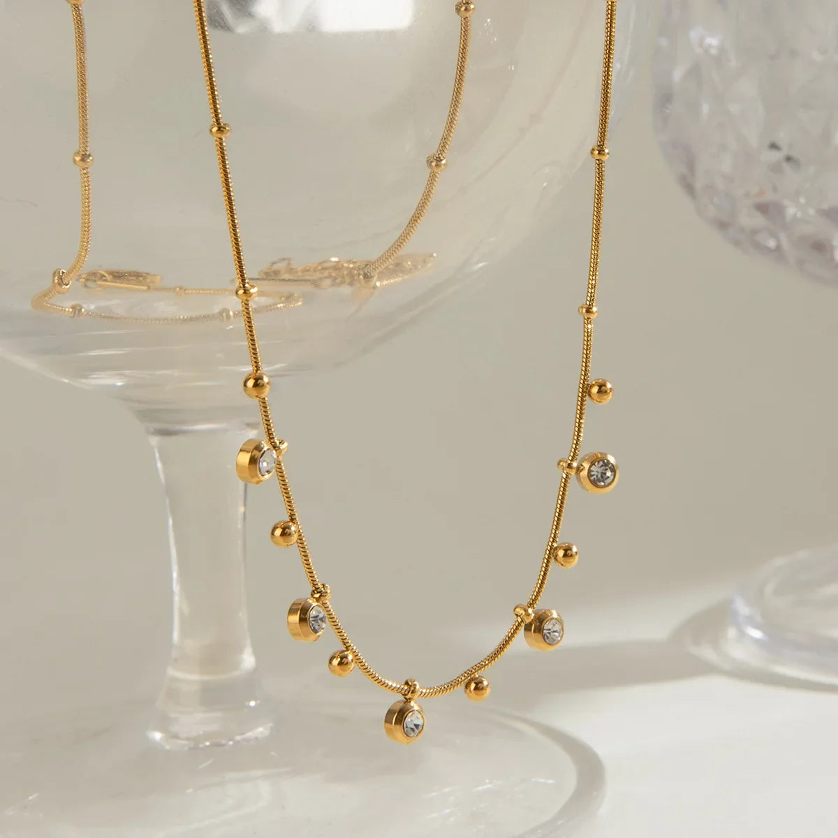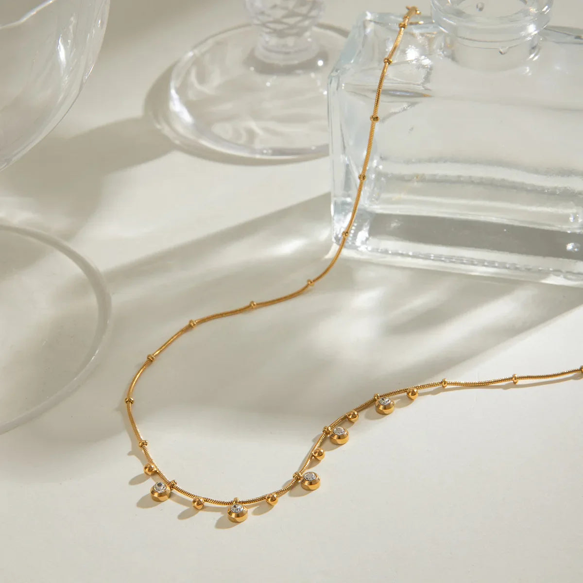 Design Refinado: Com pingentes em forma de gota adornados com zircônias, este colar oferece um brilho sutil e elegante.