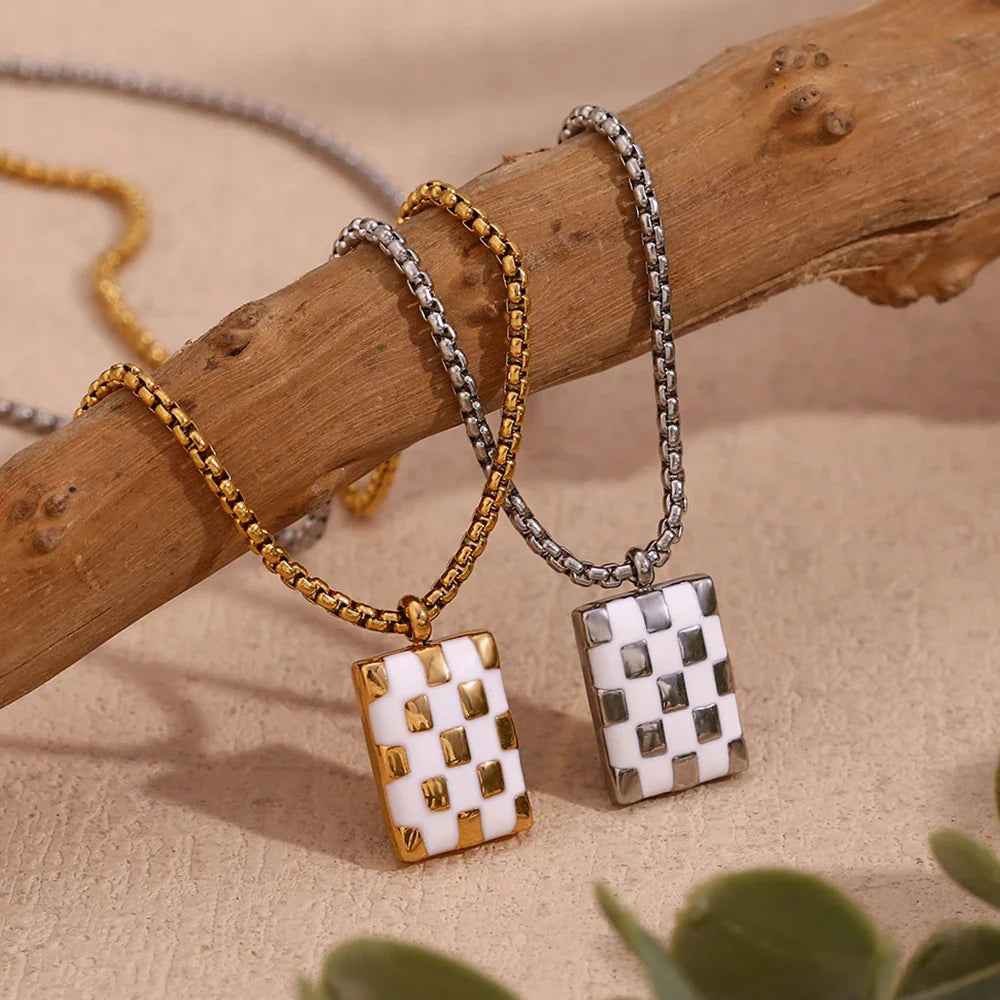 Design Exclusivo: O pingente geométrico com acabamento em esmalte oferece um visual único e contemporâneo.