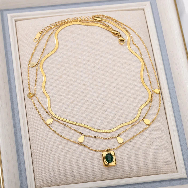 Design Exclusivo: Composto por camadas de correntes banhadas a ouro e um pingente quadrado de zircônia, este colar é um verdadeiro destaque.
