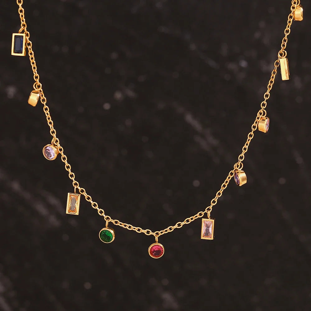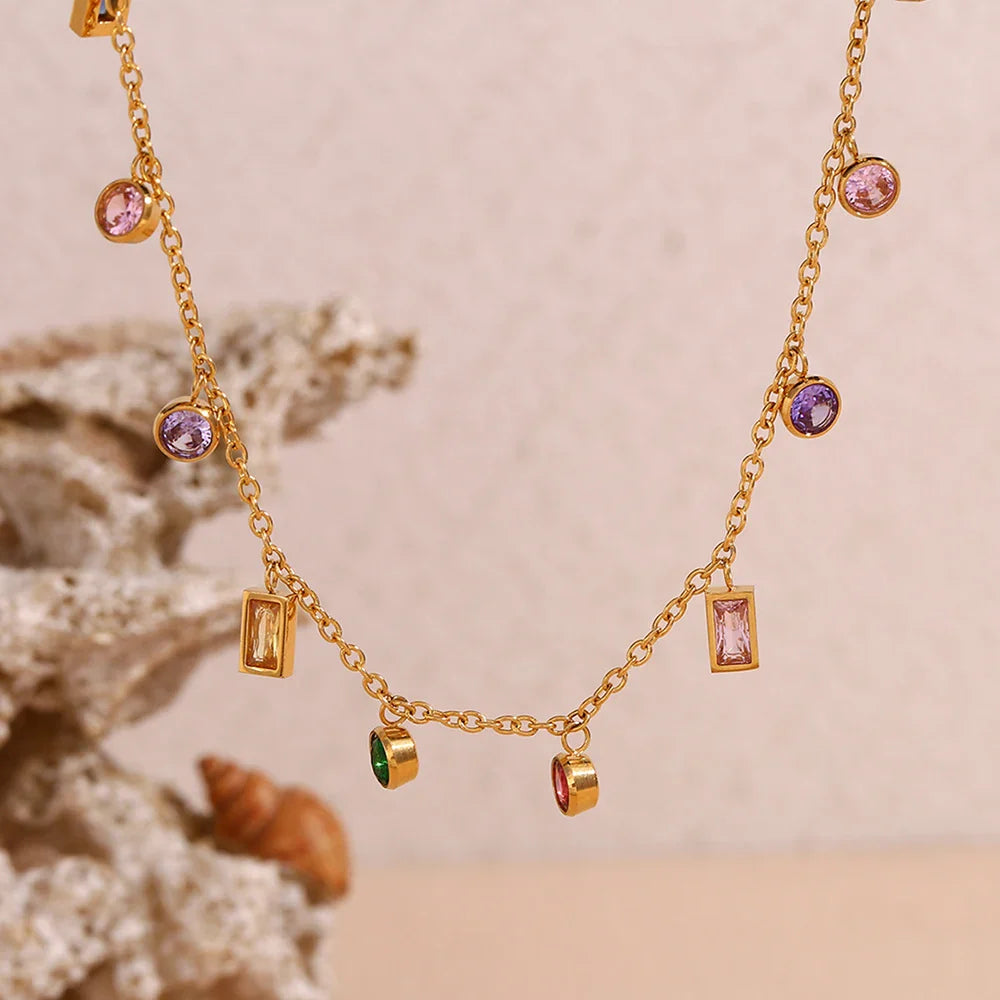 Exklusives Design: Mit geometrischen Anhängern und bunten Zirkonias ist diese Kette ein echter Blickfang.