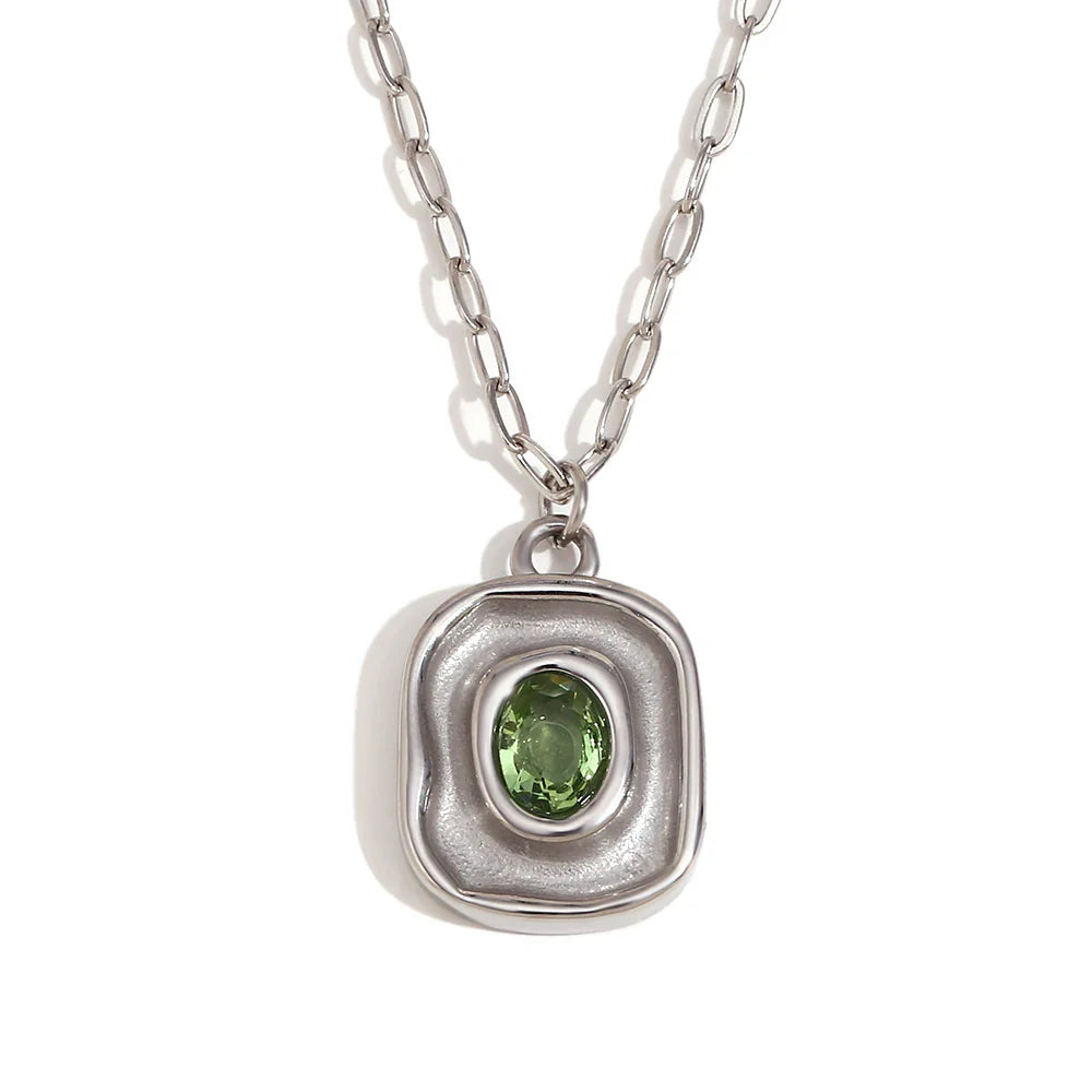 Colar Oval de Zircônia Verde com Corrente de Aço Inoxidável