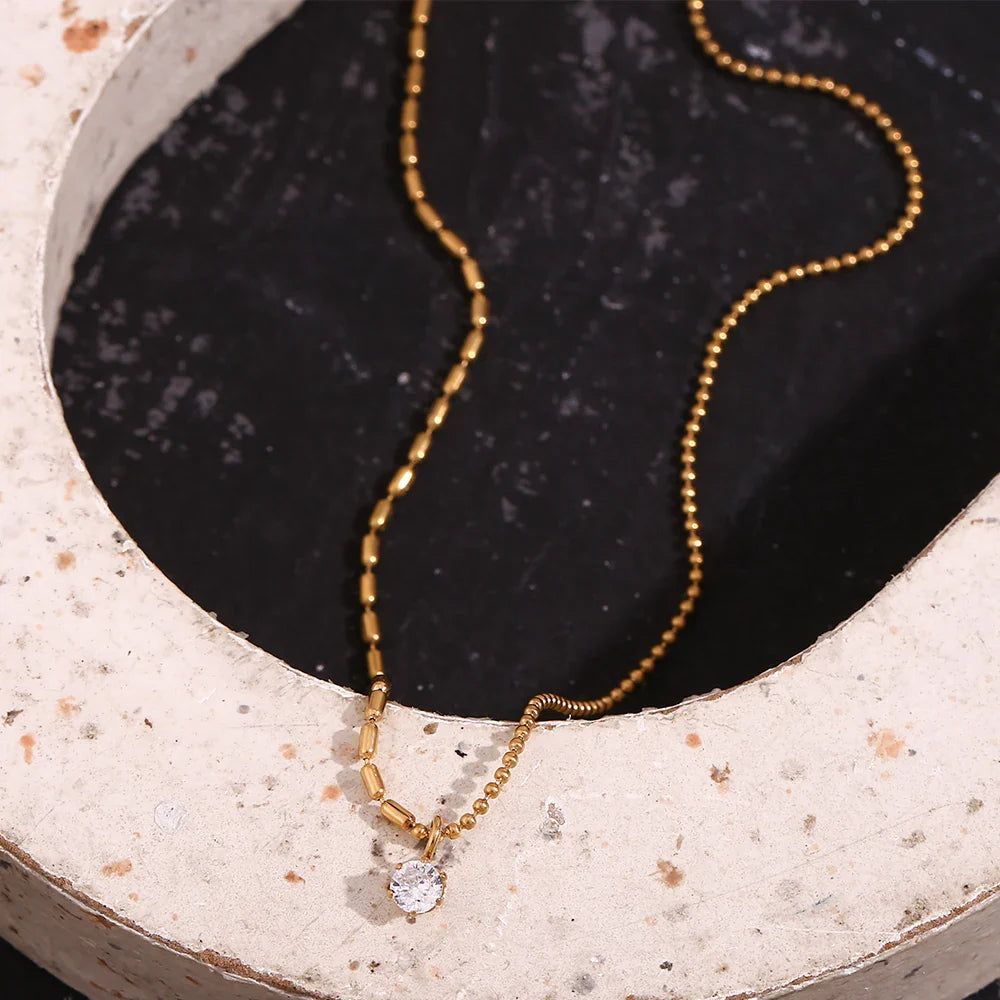 Colar Elegante com Pingente de Zircônia e Corrente Assimétrica