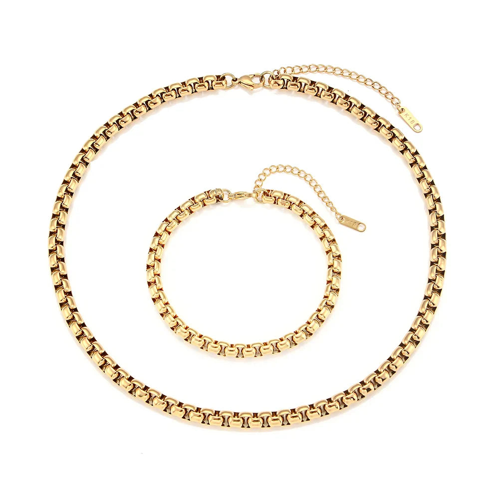 Descubra a sofisticação e o charme do nosso Conjunto Elegante de Aço Inoxidável Banhado a Ouro. Este conjunto inclui um colar e uma pulseira com design moderno e acabamento impecável, perfeito para qualquer ocasião.