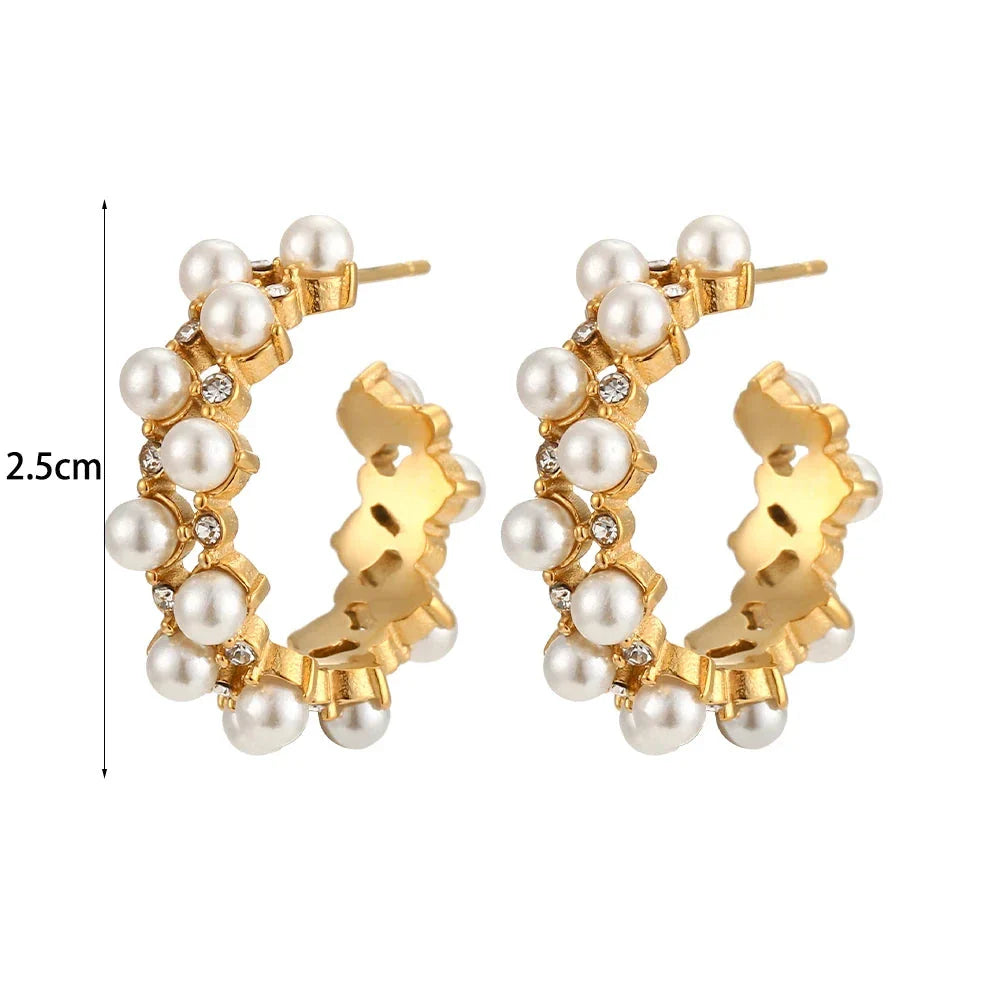 Design Elegante: As argolas são adornadas com pérolas sintéticas e zircônias brilhantes, proporcionando um visual luxuoso e moderno.