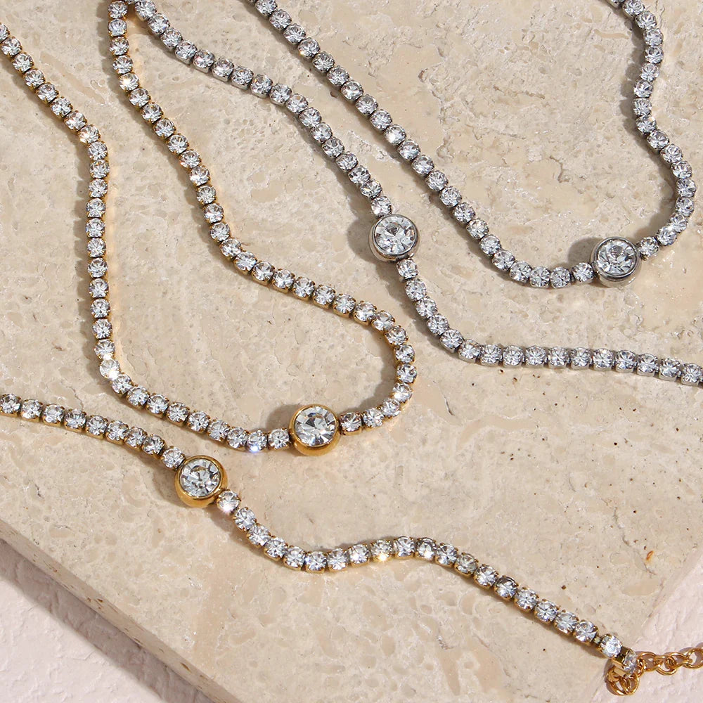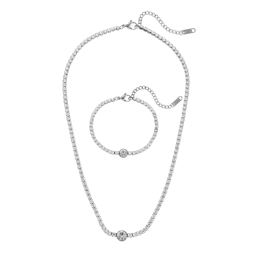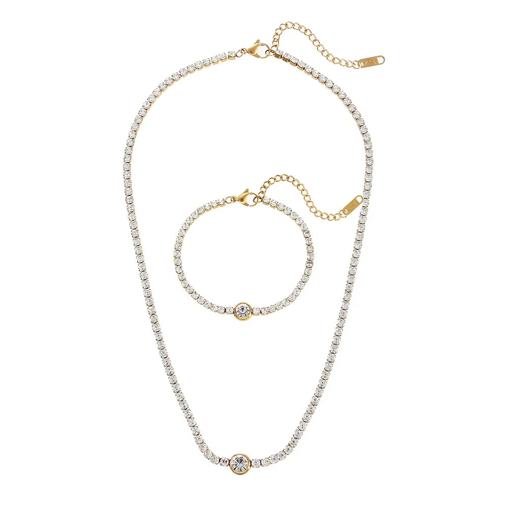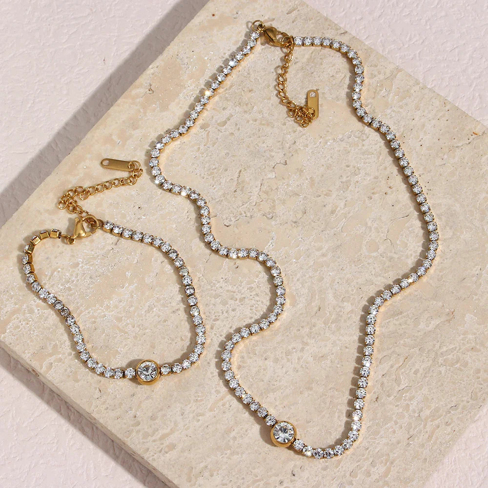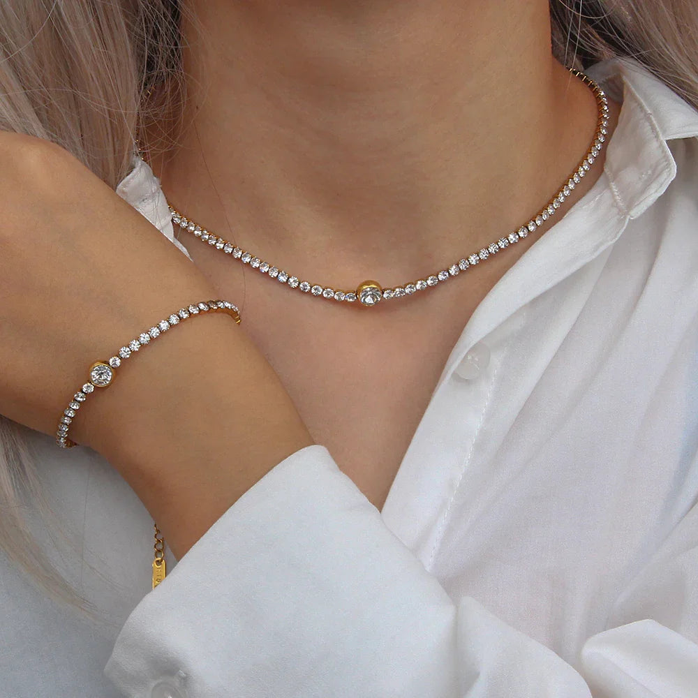 Conjunto Elegante de Colar e Pulseira com Zircônia