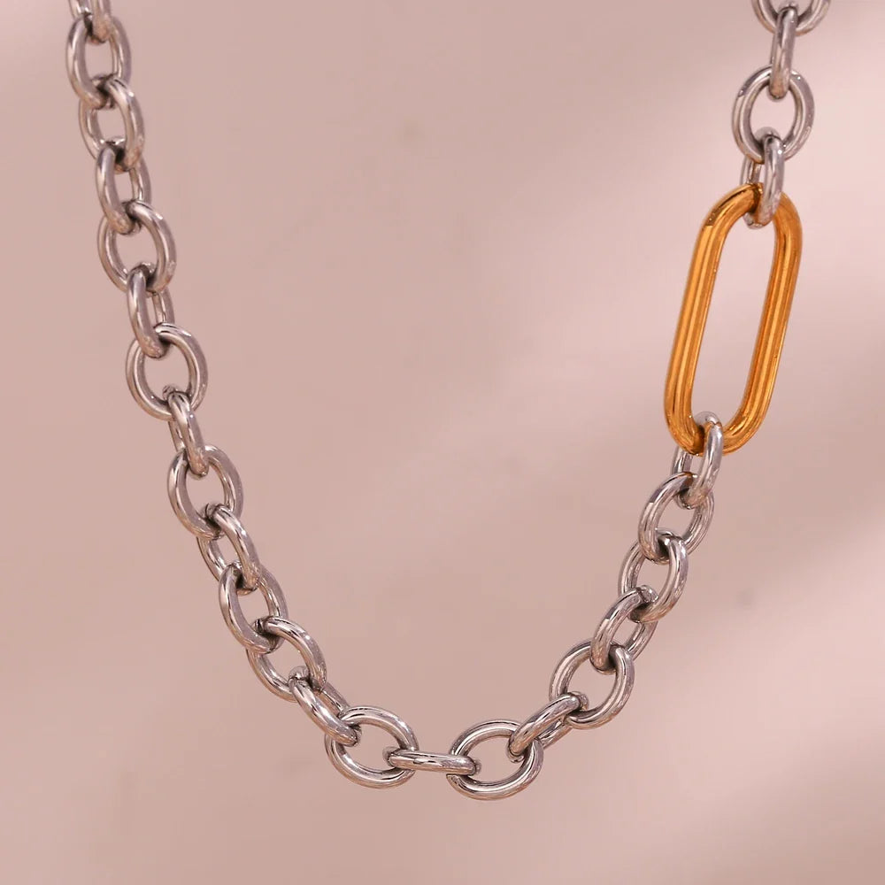 Design Moderno: Corrente e pulseira com elos robustos e detalhes em dourado, proporcionando um visual contemporâneo.