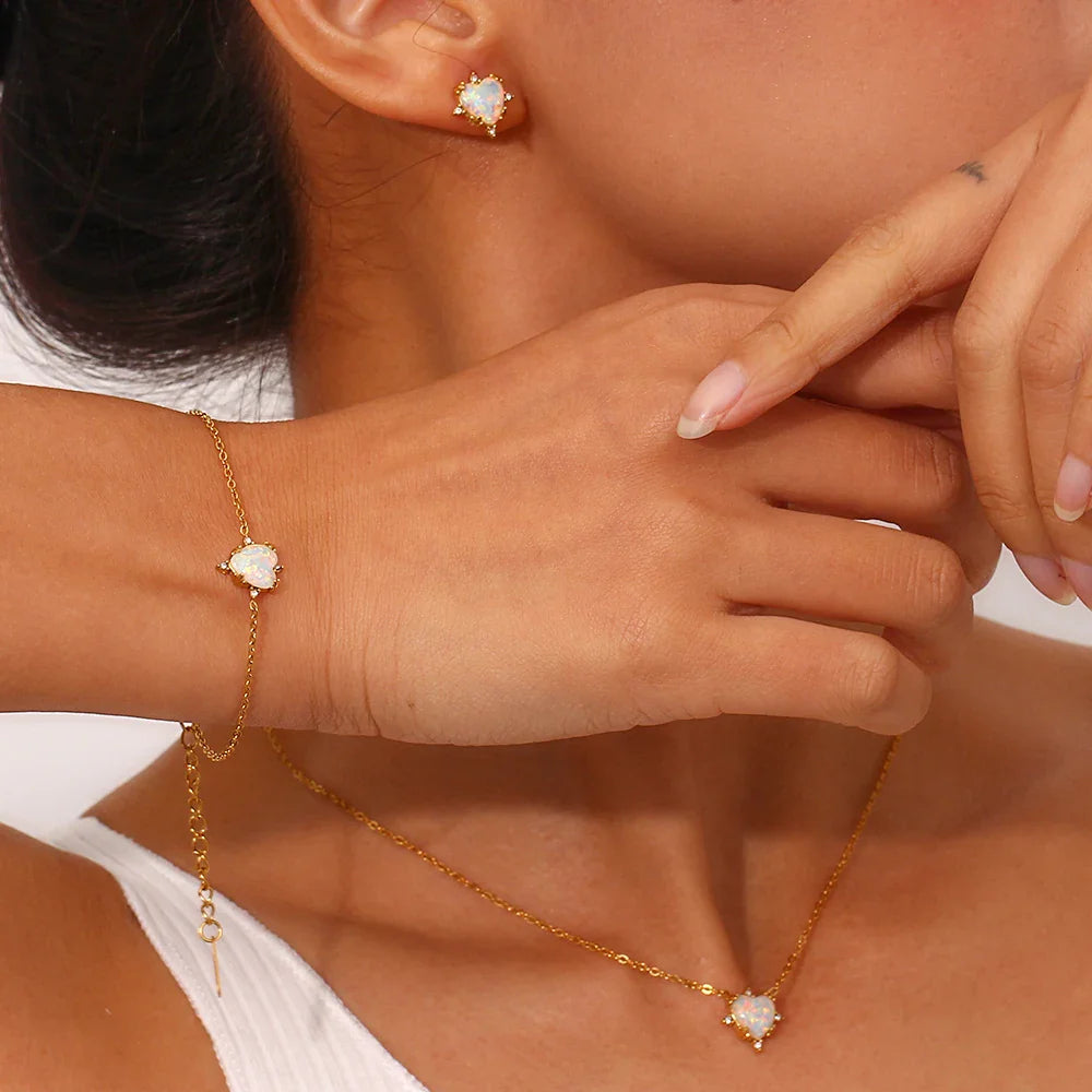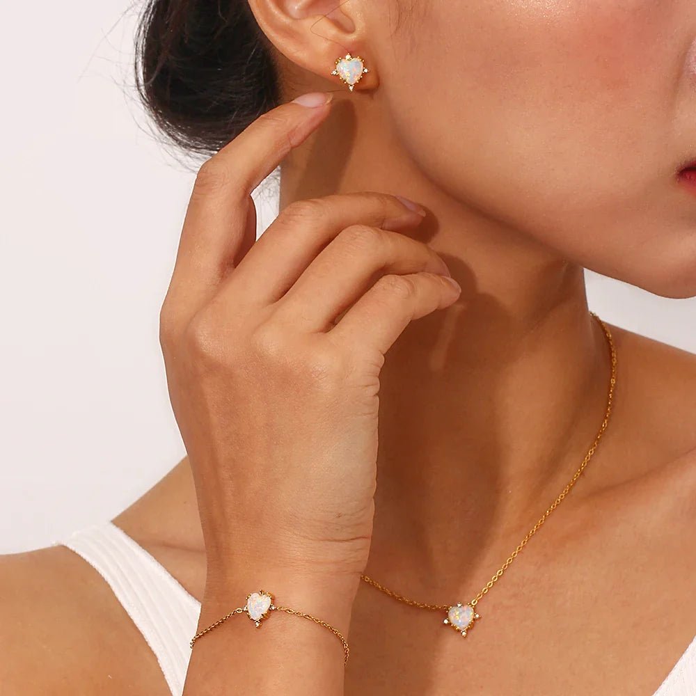 Surpreenda-se com a elegância e o charme do nosso Conjunto de Joias Coração de Opala. Perfeito para ocasiões especiais como casamentos, aniversários e Dia das Mães, este conjunto é a escolha ideal para mulheres que apreciam beleza e sofisticação.