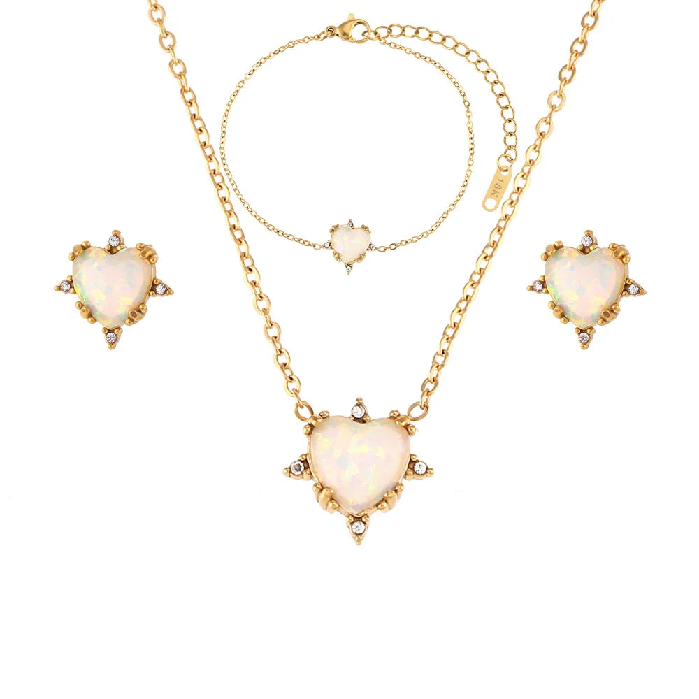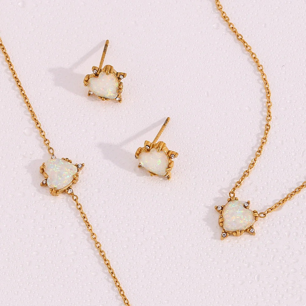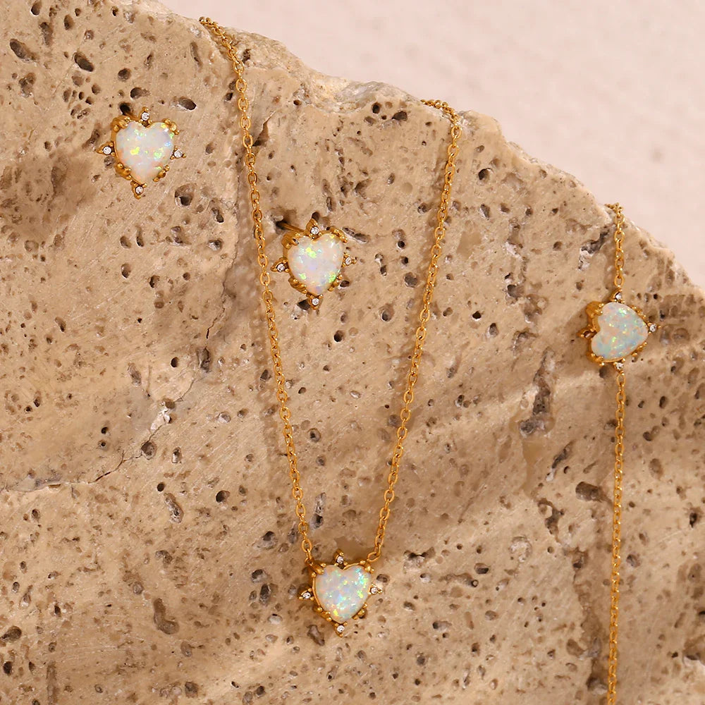 Design Encantador: O formato de coração com pedras de opala iridescentes traz um toque de romance e delicadeza.