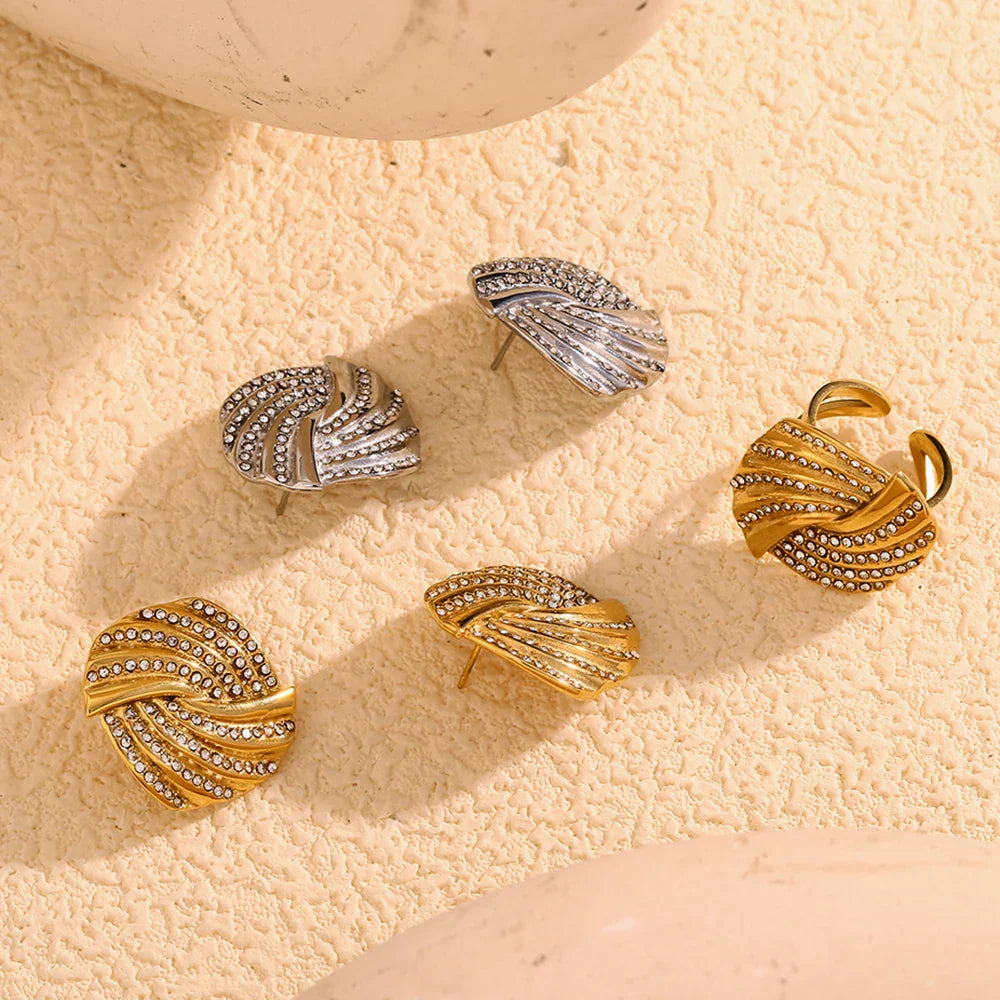 Descubra a elegância atemporal com o nosso Conjunto de Joias de Luxo, composto por brincos e anel, meticulosamente trabalhados em aço inoxidável 316L e adornados com strass cintilantes. Este conjunto é a escolha perfeita para mulheres que buscam sofisticação e charme em qualquer ocasião.