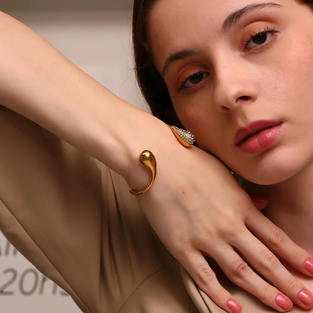 Verstellbares Tropfenarmband mit Zirkonia, vergoldet mit 18K Gold