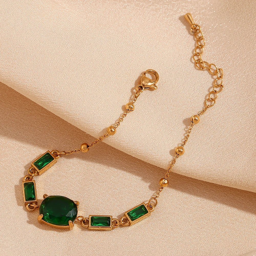 Elegantes grünes Armband mit Zirkonia und Edelstahl
