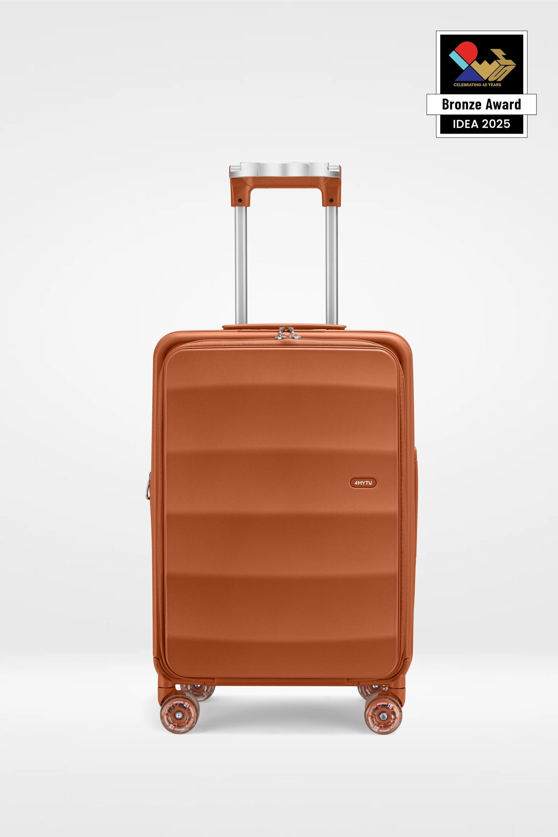 The multi-functional handle holds your coffee, phone, or bag and a front opening for quick access, and special one-sided top-opening design for deeper storage space. 4MYTU makes packing and traveling simple and stress-free. Add 360° skateboard wheels for effortless movement and an expandable design that gives you up to 35% more space, and you’re ready for any journey.