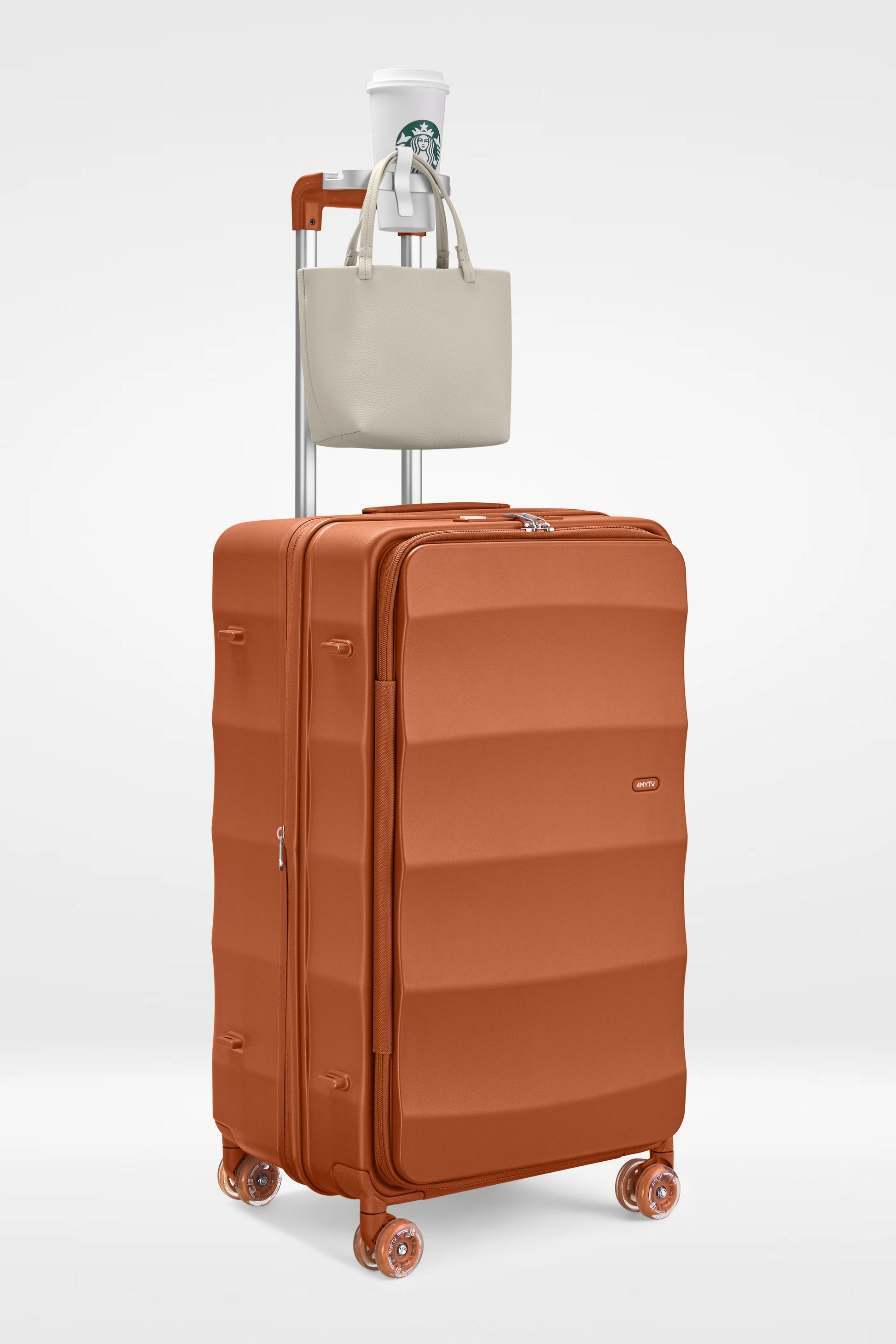 Made for Easy Travel! With a handle that holds your coffee, phone, or bag and a one-sided top-opening design for deeper storage space, 4MYTU makes packing and traveling simple and stress-free. Add in smooth-rolling wheels for effortless movement and an expandable design that gives you up to 35% more space, and you’re ready for any journey.