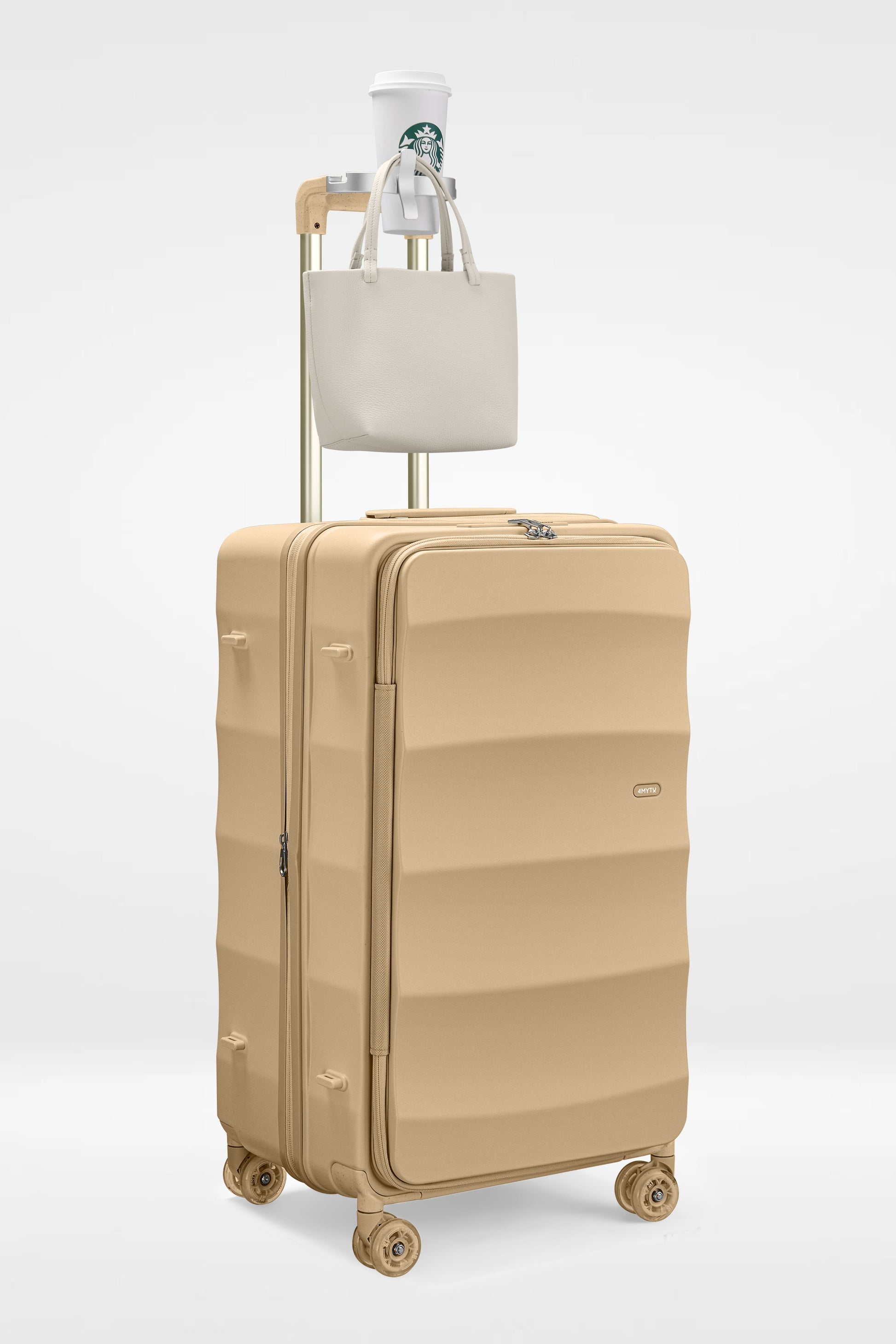 With a handle that holds your coffee, phone, or bag and a one-sided top-opening design for deeper storage space, 4MYTU makes packing and traveling simple and stress-free. Add in smooth-rolling wheels for effortless movement and an expandable design that gives you up to 35% more space, and you’re ready for any journey.