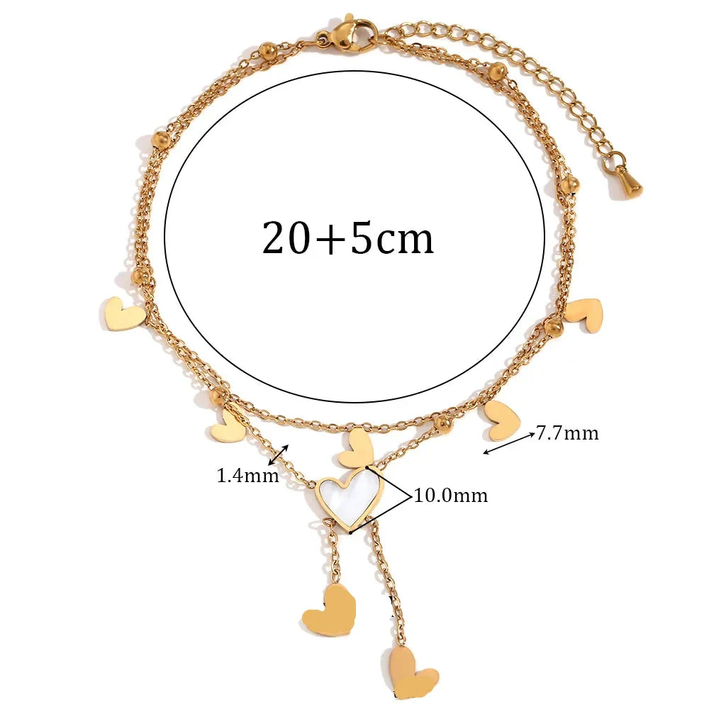 Verleihen Sie Ihrem Look einen Hauch von Eleganz und Charme mit unserer Herz-Fußkette mit doppelter Schicht. Hergestellt aus hochwertigem 316L-Edelstahl und mit 18K-Gold überzogen, ist dieses Stück perfekt für Frauen, die Stil und Raffinesse schätzen.