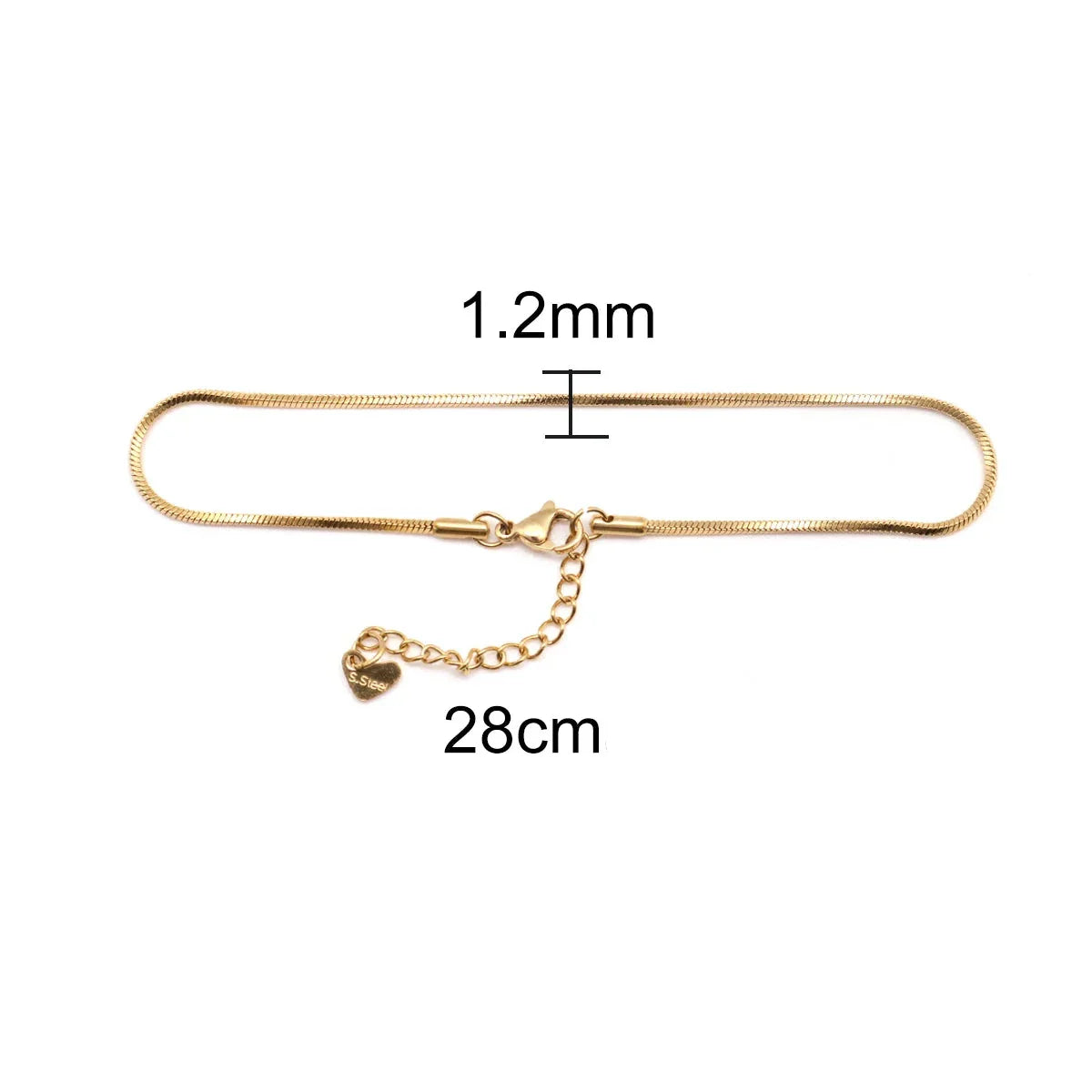 Eigenschaften und Vorteile: Modernes Design: Mit einem makellosen goldenen Finish ist diese Fußkette ideal für jede Gelegenheit, von formellen Veranstaltungen bis hin zu zwanglosen Treffen. Überlegene Haltbarkeit: Hergestellt aus hochwertigem Edelstahl, garantiert sie Widerstandsfähigkeit und lange Haltbarkeit, während sie ihren Glanz über lange Zeit bewahrt. Komfortable Passform: Erhältlich in den Größen 23,3 cm und 23,5 cm, bietet sie eine perfekte und bequeme Passform für Ihren Knöchel. Ideales Geschenk: Überraschen Sie jemanden Besonderen mit diesem eleganten und bedeutungsvollen Geschenk, perfekt für Geburtstage, Feiern oder einfach, um Zuneigung zu zeigen.