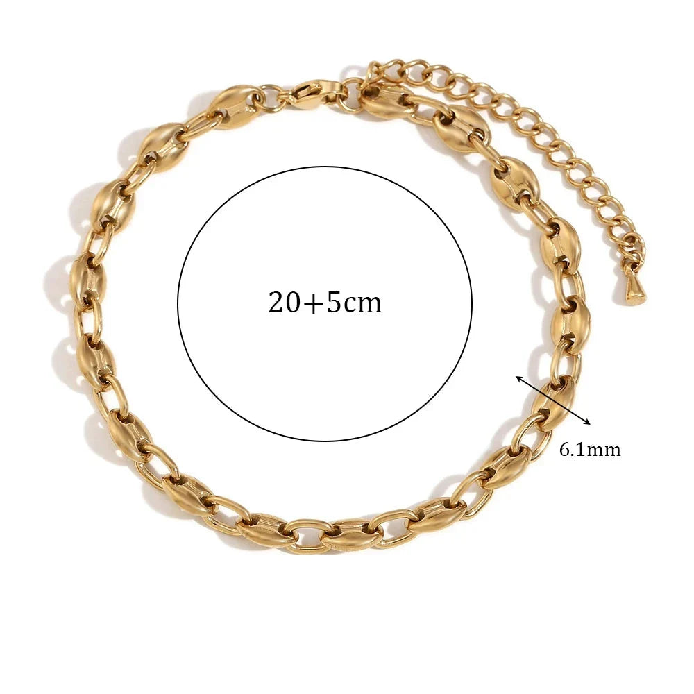 Verleihen Sie Ihrem Look einen Hauch von Raffinesse mit unserer eleganten Fußkette, vergoldet mit 14K Gold. Hergestellt aus hochwertigem 316L-Edelstahl, ist dieses Stück perfekt für diejenigen, die Stil und Langlebigkeit suchen.